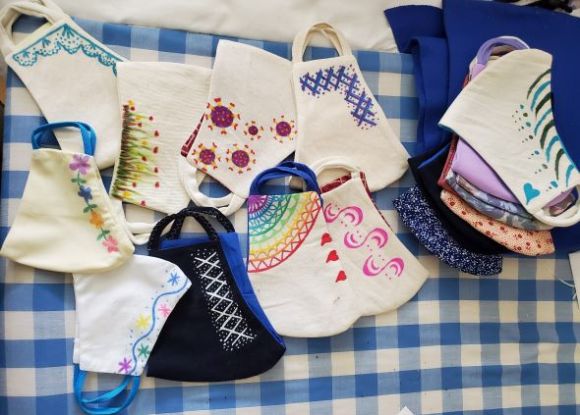 And I’m still making masks, although not as many these days, especially as the weather is warmer and we are allowed to join friends at our beach. I’ve lost track of how many masks I’ve made but it’s over 200 now. And I’ve been painting designs on them, now that I have more time.