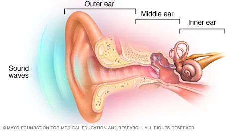 Hearing loss can be Conductive, caused by problems in the outer or middle ear that inhibit sound waves from reaching the hearing mechanism. Or they can be Sensorineural, caused by a problem in the inner ear where the sound waves are translated into nerve impulses that our brain can read. This also includes any problems with the nerves carrying these impulses to the brain, or in the brain where they are translated into sounds we understand, but this is less common.